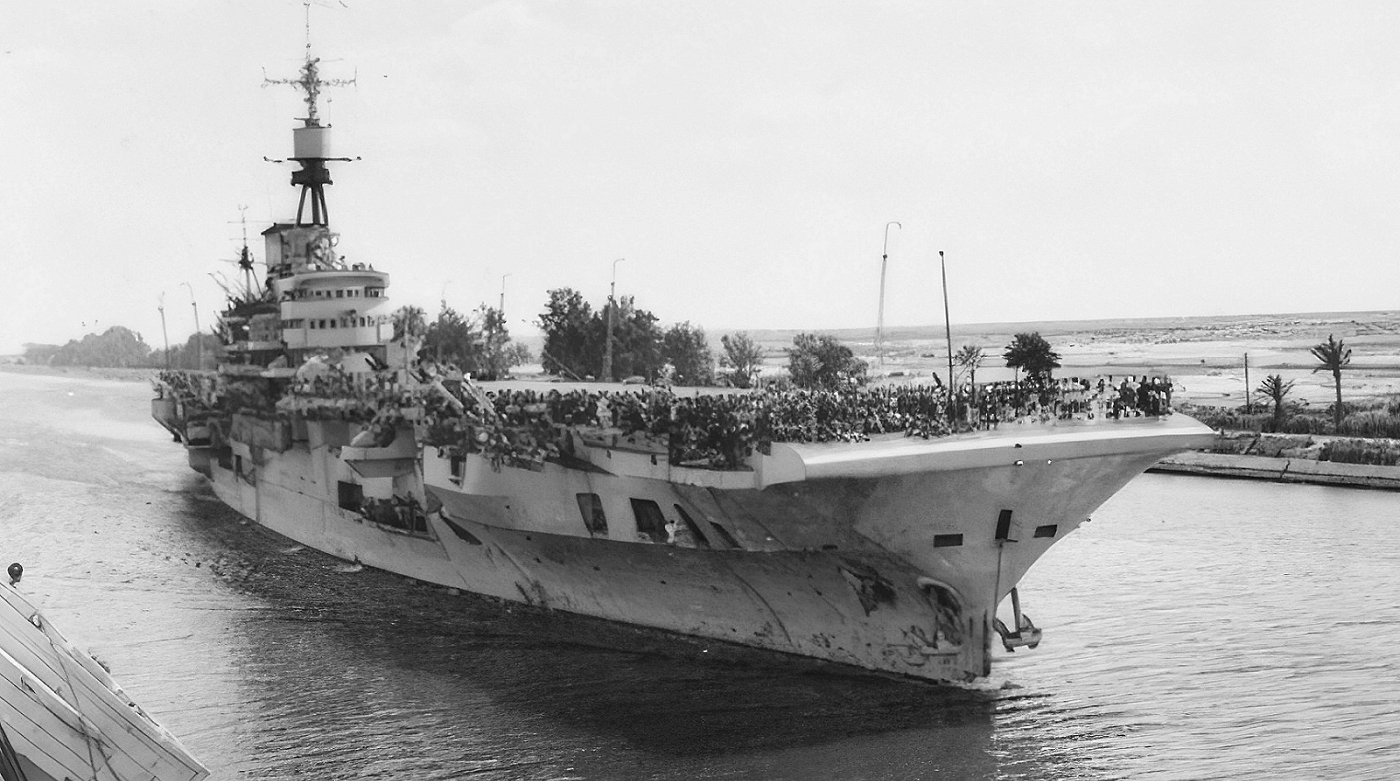 Once all the aircraft had embarked, the ship set sail for Gibraltar, accompanied by the destroyers GRENVILLE, UNDINE, and URANIA, on the first leg of the journey to Ceylon to join the new British Pacific Fleet. The ship did not call at Gibraltar, but did put in at Algiers once in the Mediterranean, arriving at around 08:00 on the 26th. After fuelling, she departed for Port Said around 16:00. The Carrier and her escorts arrived at Port Said at 15:00 on November 30th 1944. They entered the Suez Canal early on December 1st and arrived at Port Suez later that day. At the start of the final leg of the voyage to Colombo, the Destroyers GRENVILLE and URANIA sailed for Aden at 06:15 on the 2nd to take on fuel and join the carrier, which was approaching Aden, relieving UNDINE to fuel and rejoin the carrier later. INDEFATIGABLE and UNDINE sailed later that day at around 12:15. At 02:52 on the 5th, UNDINE was detached to fuel at Aden. GRENVILLE and URANIA rejoined the Carrier at 06:30 and UNDINE at 18:30. All arrived off Colombo, Ceylon at 11:30 local time on December 10th.