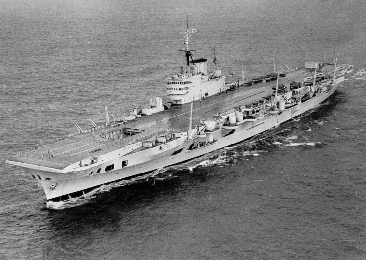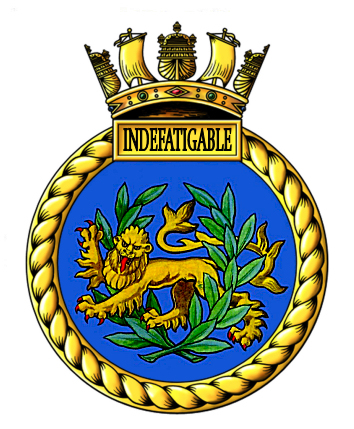 INDEFATIGABLE was the second of two “Implacable-class” aircraft carriers ordered for the Royal Navy prior to the start of World War II. She was ordered from John Brown & Co., Clydebank, Scotland, on 19 June 1939, and her keel was laid down on November 3rd that year. She was launched on December 8th 1942, by her sponsor, Victoria of Hesse, Dowager Marchioness of Milford Haven. The ship had spent 3 years, 1 month & 5 days on the ways. The ship was commissioned as “INDEFATIGABLE” at 09:00 on December 8th 1943, Captain. Q. D. Graham, CBE, DSO, RN in command. She was the sixth RN ship to carry the name, which was introduced in 1783 and last used for a battleship sunk during the Battle of Jutland in 1916.
