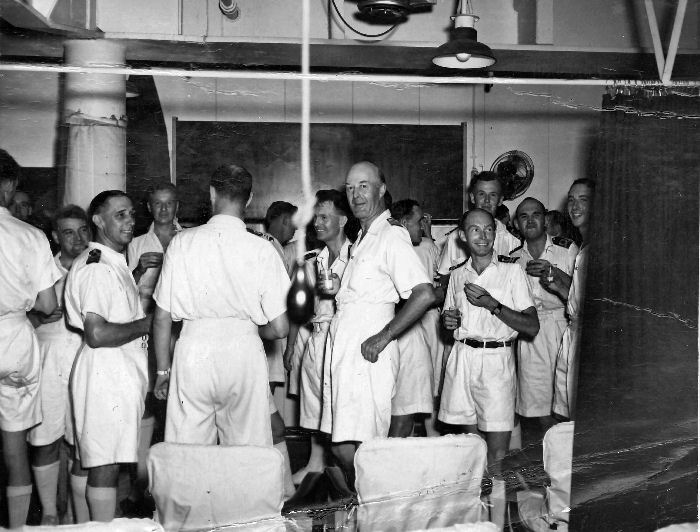 entertained to dinner in the wardroom aboard HMS ATHELING