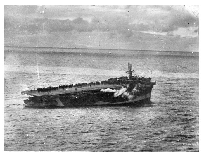 ditching unnecessary items off the flight deck to lighten the ship.