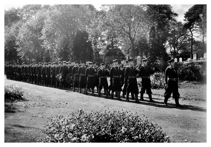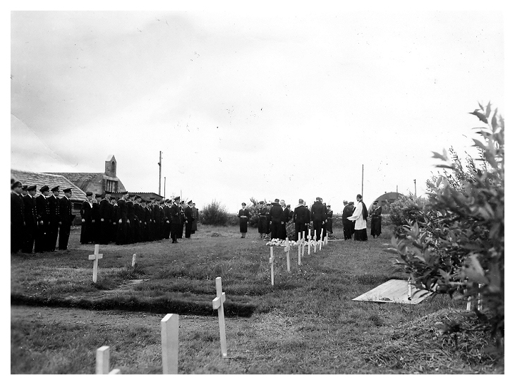 company of HMS NABOB attend the burial of their comrades at the