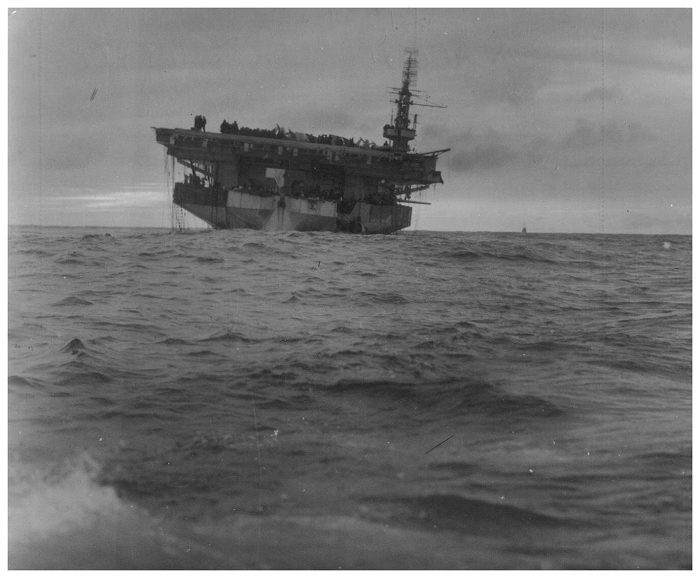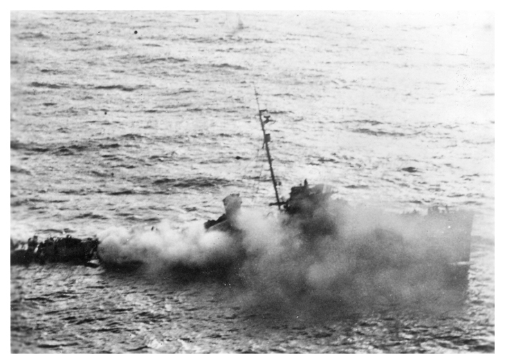struck by a torpedo fired from HMS VIGILANT in order to scuttle her