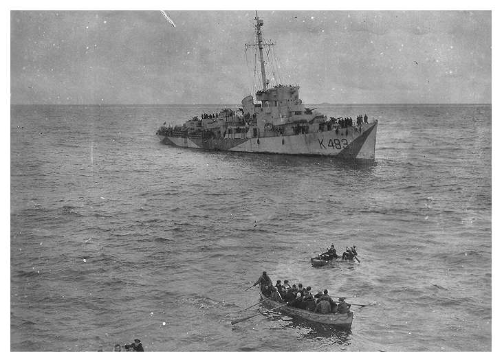 once all her crew had been taken off. Below: HMS KEMPTHORNE prepares