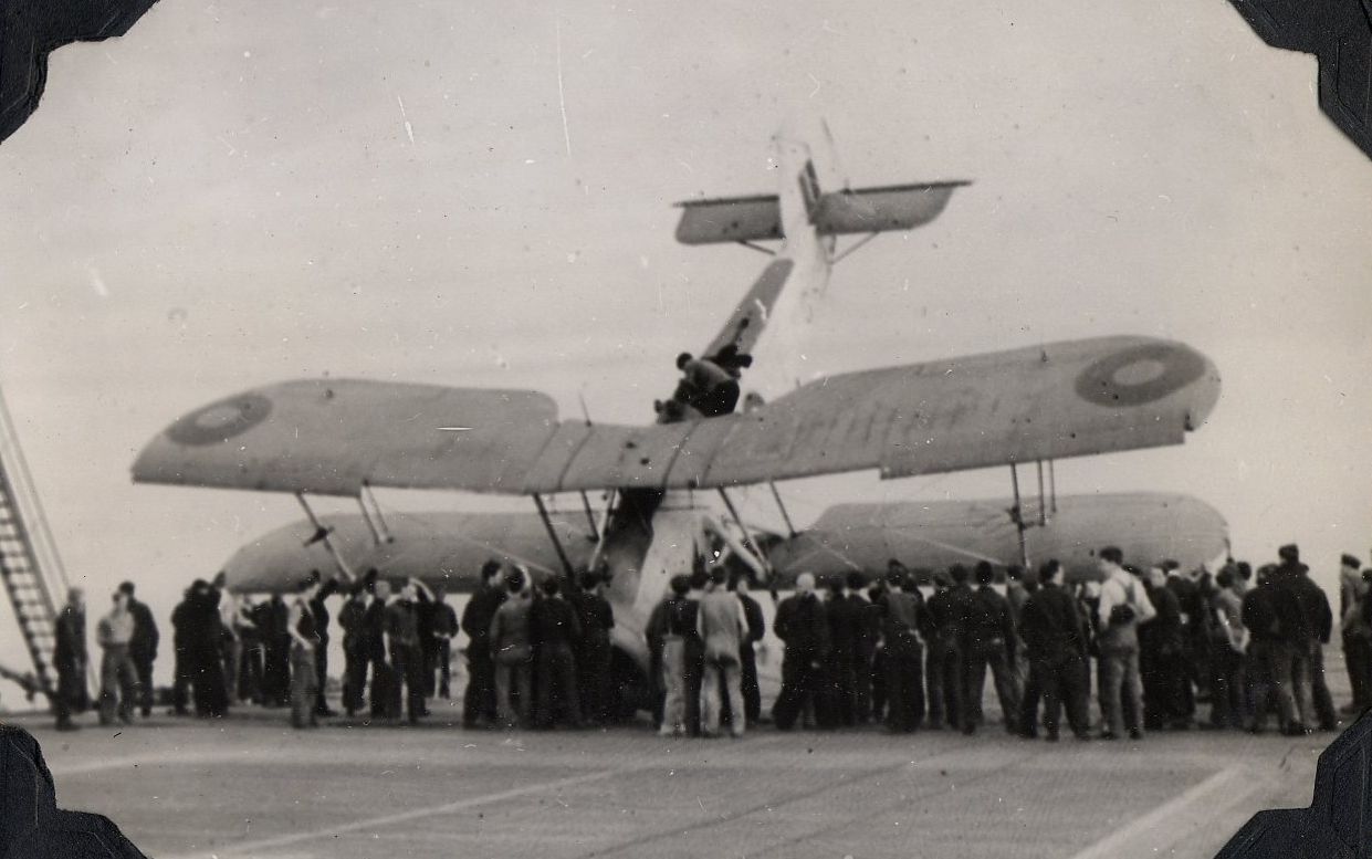 badly damaged Swordfish, it's engine having been