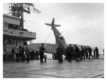 HMS SLINGER operating Seafires from 768 Deck landing