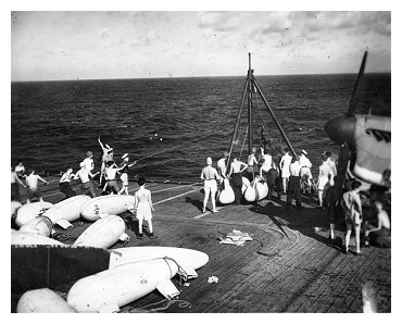 arrestor cable had whipped across the deck striking an Oerlikon Gunner,