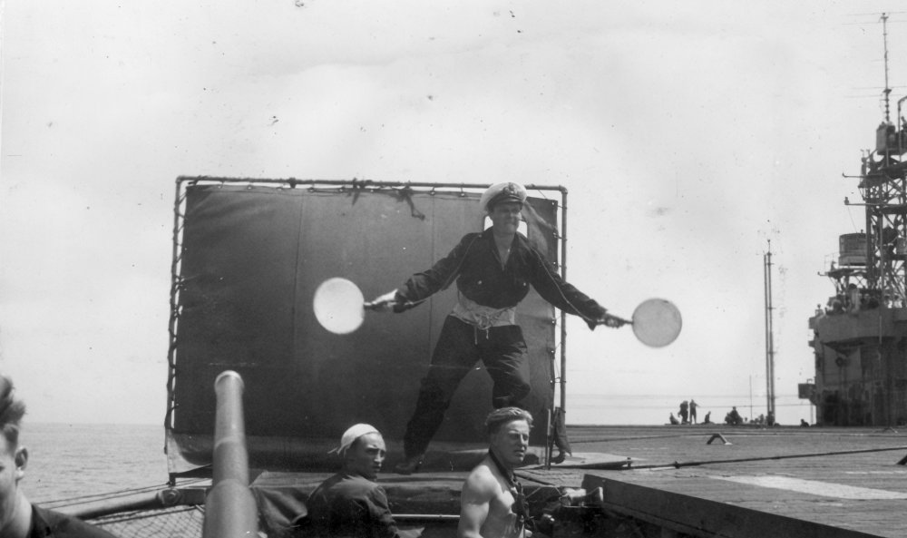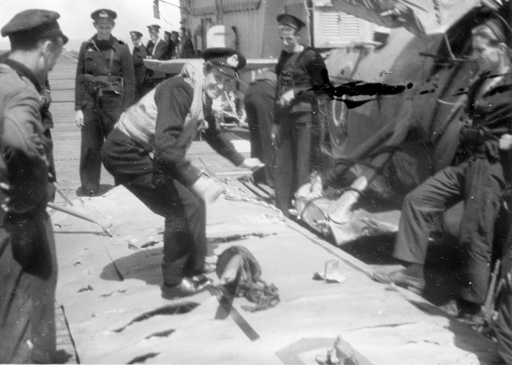 Images and memorabilia from the private collections of: Images marked ♥ are courtesy of David Hamilton, his uncle, SSX28439 Leading Seaman William Massey, served on ATTACKER as a member of the 4" Gun crew. He joined her at San Francisco and left after the Salerno landings. Images marked ♦ are courtesy of Christopher Pegler, his father, Major Richard Pegler, Royal Artillery, was the Army Liaison Officer on board during the ship’s operations in the Mediterranean, in particular Operations AVALANCHE and DRAGOON. Images marked ♣ are courtesy of George Clarke, his father Sub Lt. (A) William Anthony Clarke, RNVR (P) served with 879 squadron March - October 1944. He flew missions during Operation DRAGOON, the invasion of Southern France, Operation OUTING I & OUTING II in the Dodecanese Islands, and Operation MANNA, the reoccupation of Piraeus. Images marked ♠ are courtesy of Courtesy of Peter Small, his father was Surg. Lt William Small RNVR who served aboard ATTACKER.