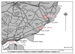 Main road to Arbroath and to Dundee, 19 miles (R); Station