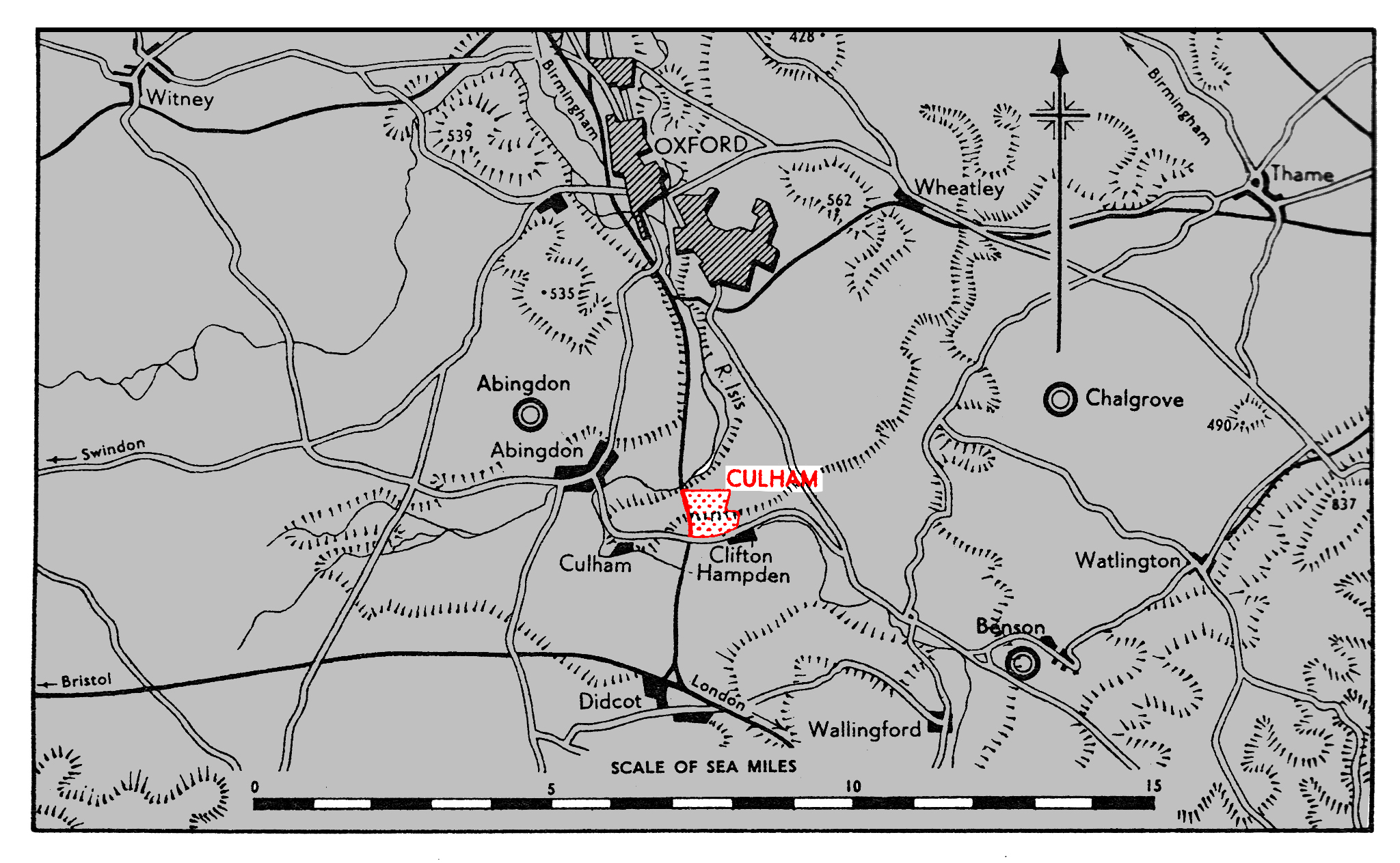 The airfield lies 5. miles S. of Oxford and 1 mile ENE.