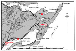 The Alness river flowing through the village of the same name in Cromarty Firth, 2 miles ENE. and Allt Graad flowing through. Evanton and forming the SW. boundary of the airfield as it enters the Firth.