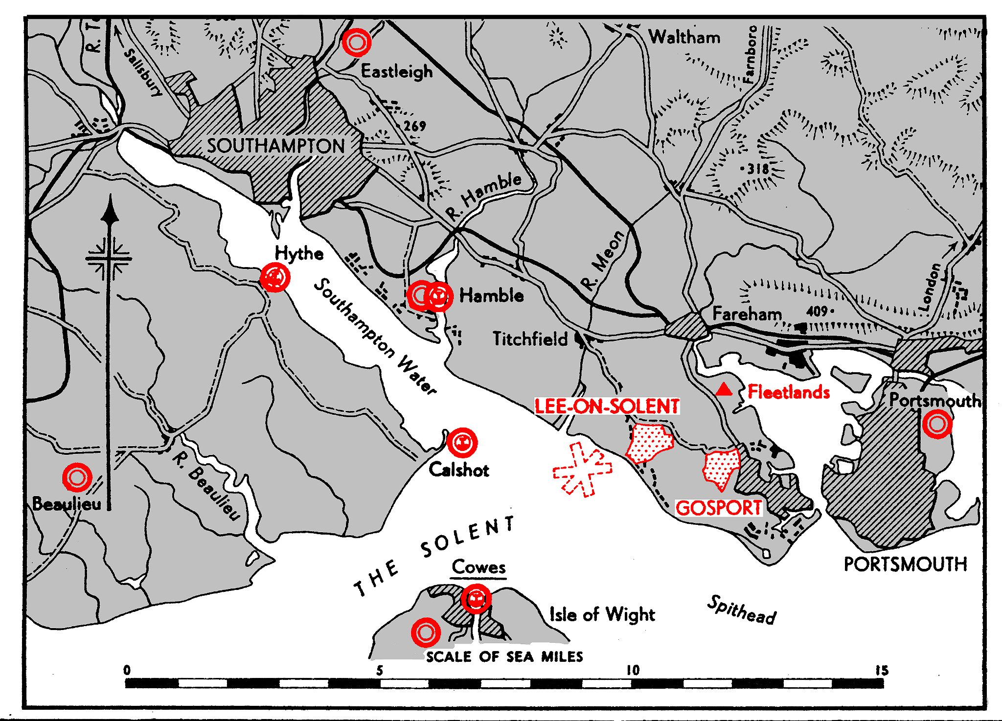 The airfield lies on the coast 4 miles WNW. of the entrance to Portsmouth Harbour, with Lee-on-Solent adjoining its SE. boundary. Gosport lies 21½ miles E. Southampton lies 8 miles NW. |