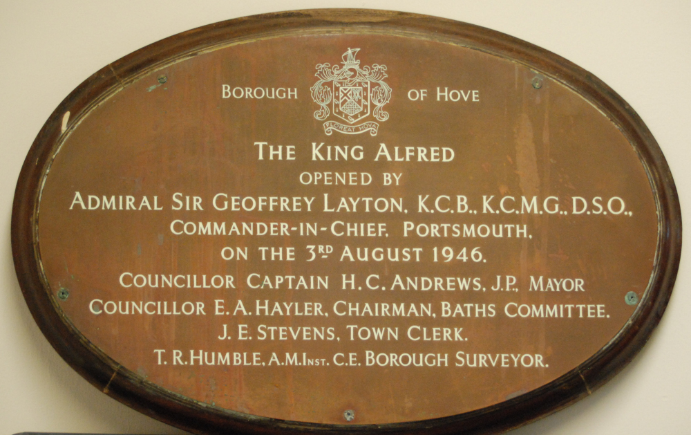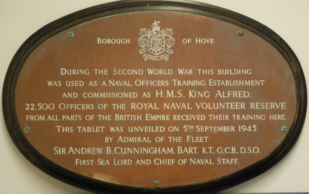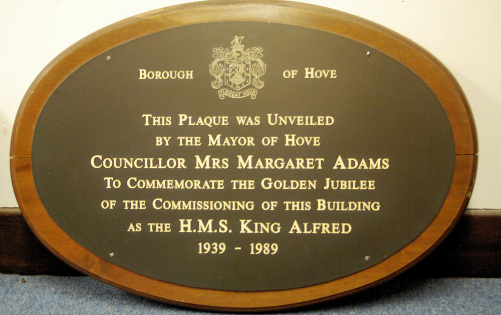 On January 7th 1946 HMS KING ALFRED moved to Exburv House near Southampton; the site at Hove Marina was known as HMS KING ALFRED II during its clean up and demilitarisation period, finally closing in June 1946. When it reopened to the public in August 1946 Hove Marina was renamed 'The KING ALFRED Leisure Centre'. A commemorative plaque was mounted on the wall in the main entrance hall of the building to remember the work of this establishment during the Second World War. A second plaque marks the reopening of the reopening and a third was added to commemorate the 50th anniversary of the commissioning of HMS KING ALFRED.