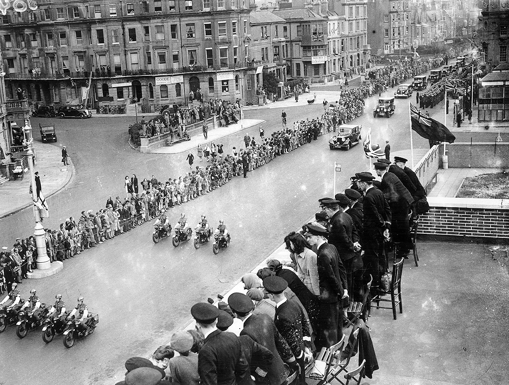On May 8th 1945 the personnel and trainees of KING ALFRED celebrated VE Day, a national holiday having been declared. Men and women from KING ALFRED marched through the town in the Victory Parade; the WRNS, being the junior service, led the naval contingent. By the end of the month a scaling down of operations at KING ALFRED was begun as the numbers of officers required for sea duty became greatly reduced.