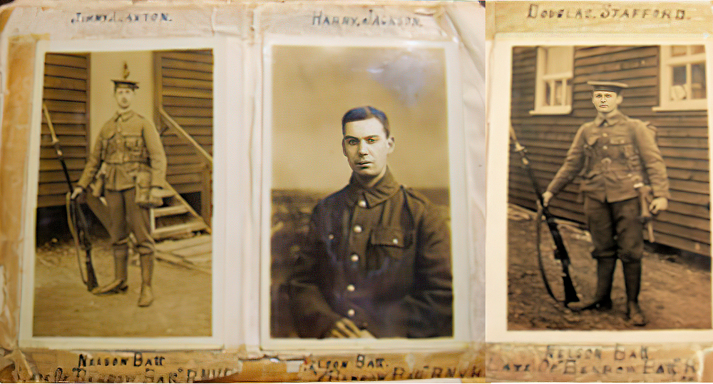 We arrived at the rest camp feeling done up, I might mention here that I had been 9 days landed from the ship, and up to this time I had not had a wash, soap and water were both very scarce, but never less I made this my first job, despite the many drawbacks. I might also add that the drinking water was very bad, but owing to the terrific heat of the sun we were forced to drink it. The bully beef, and biscuits were very hard to digest, but we soon got used to all these difficulties. Our breakfast usually consisted of a very salt piece of bacon, and a little tea, and sugar, with a biscuit, and some bully beef for dinner (no desert.)[sic] For supper we had more biscuit, with cheese, if the sun had not melted it during the day, or the flies had not eaten it. Now and again we change our menu, by smashing up some biscuit, mixing it with a little water, boil it for a few minutes, after this, mix with a little of the famous plum and apple jam. All our meals were very salt, which compelled us to drink more water than we should have done. Now and again we had a fly stew, as we called it. We were going along fairly well when one day we noticed a stir in our lines. On enquiring, we learned that owing to our Battalions having such heavy casualties, we were to be put with another Battalion, who also had heavy losses, to make one strong one. This news seemed to upset the old lads, as after being so long together they did not care about being parted. We had got used to all our officers, and anyone can imagine how we felt when we said good bye to our old mates, and officers. I was transferred to the Nelson Batt. And the only thing left to do was to get used to it, but I soon found out that my lot was by no means easy. (? 9th June ~ by RJH)