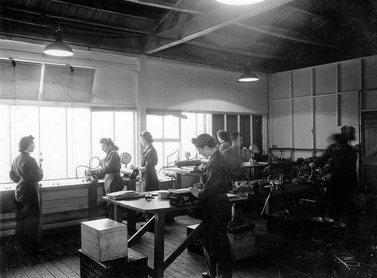 WRNS (T) ratings at work in the Depth Charge pistol workshop, HMS CAROLINE- Peggy is stood, far left