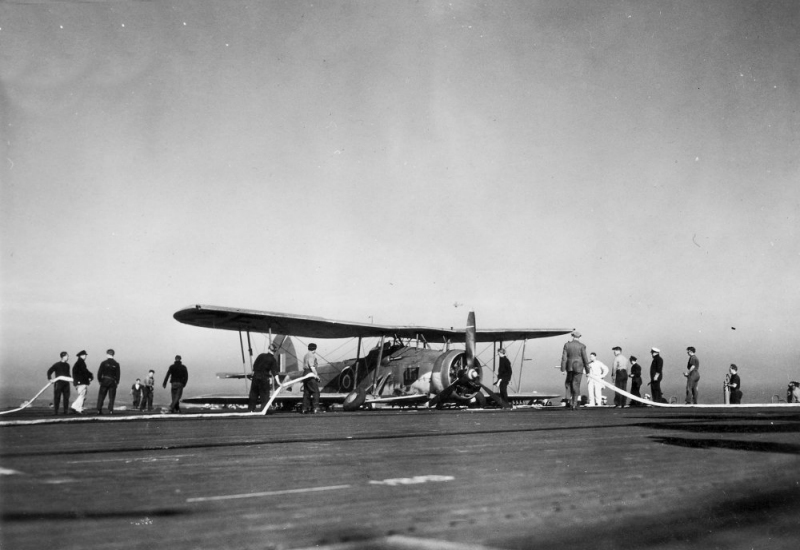 On March 2nd 838 squadron re-embarked together with a further 4 Swordfish of 840 squadron, both flying out from USNAS Quonset Point, to provide air cover for an eastbound convoy from Curacao. The ship called at Kingston Jamaica on route and two replacement Swordfish (V4718 & W3967) were embarked from the storage section at RNAS Palisadoes. At least one aircraft suffered significant damage while flying from the ship, V4387 ('2C') lost its undercarriage when it missed all the arrestor wires and was stopped by the barrier; date and location are unknown.
