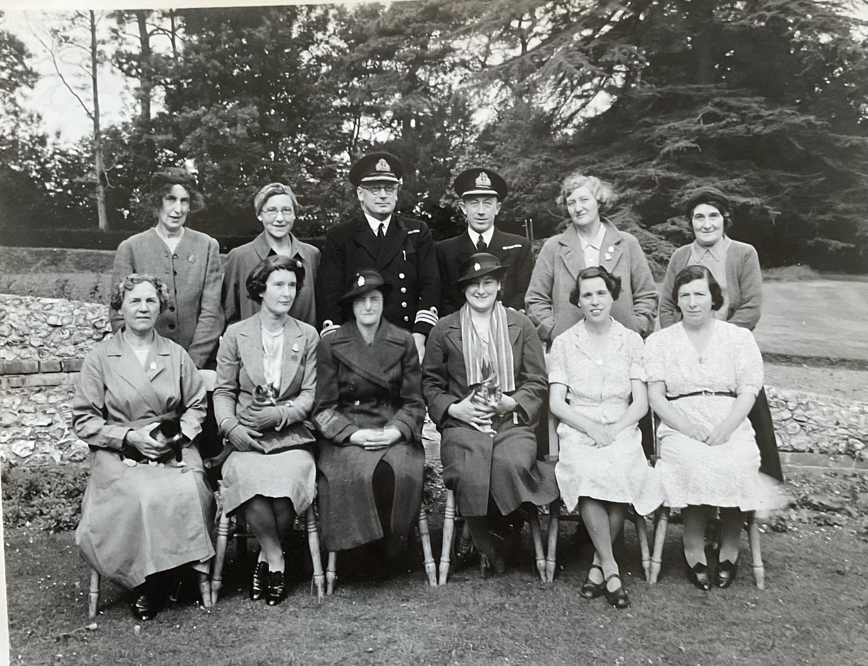 In this picture, the two Commanders are grouped with members of the local Women’s Voluntary Service (WVS), later the Women’s Royal Voluntary Service (WRVS).