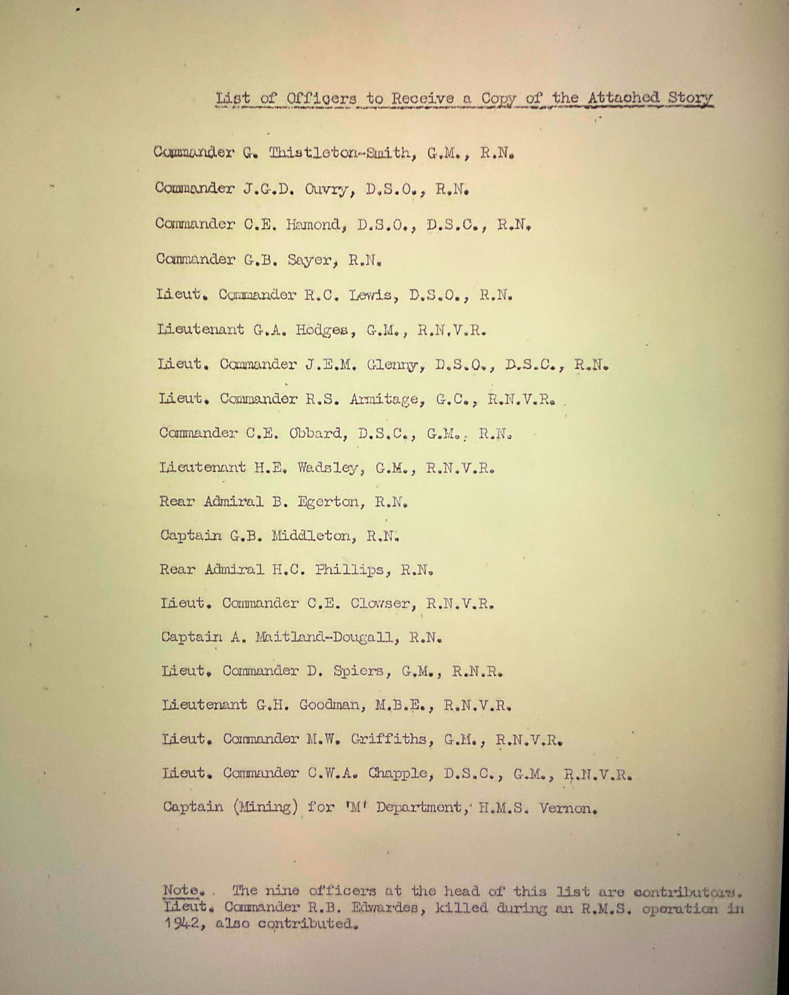 One name on this distribution list is Lt. Commander C E Clowser, who, as noted above, was a member of the Book Production Department rather than a mine researcher, so perhaps he acted as editor.